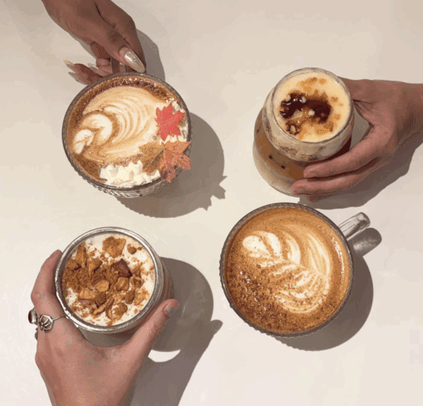 The Gilmore Girls inspired menu at Sorella Coffee features a pumpkin spice chai and pumpkin spice latte, as well as other fall flavors such as spiced oatmeal cookie and maple pecan.