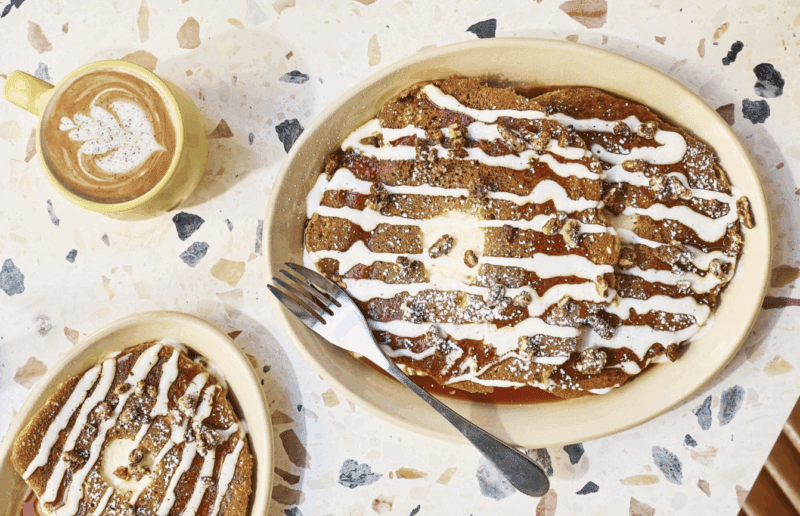 Indulge in the sweet fall breakfast of your dreams at Cast Iron Waffles. The cozy waffle spot has a pumpkin pie waffle for the season, and you can pair your food with a pumpkin spice latte, too.