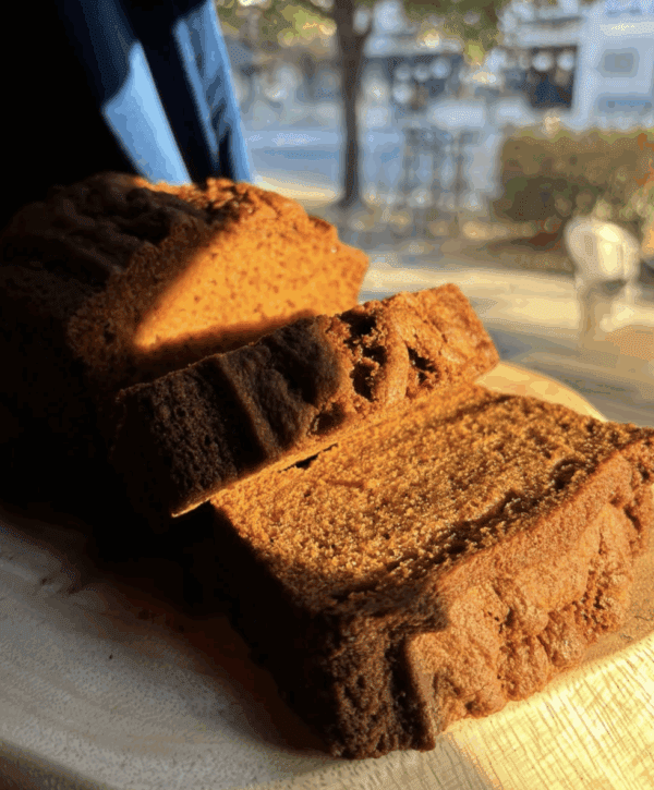 The signature pumpkin bread is back at Smelly Cat Coffee House. Delicious, moist and pairs perfectly with a pumpkin spice latte or an iced coffee with pumpkin spice cold foam.