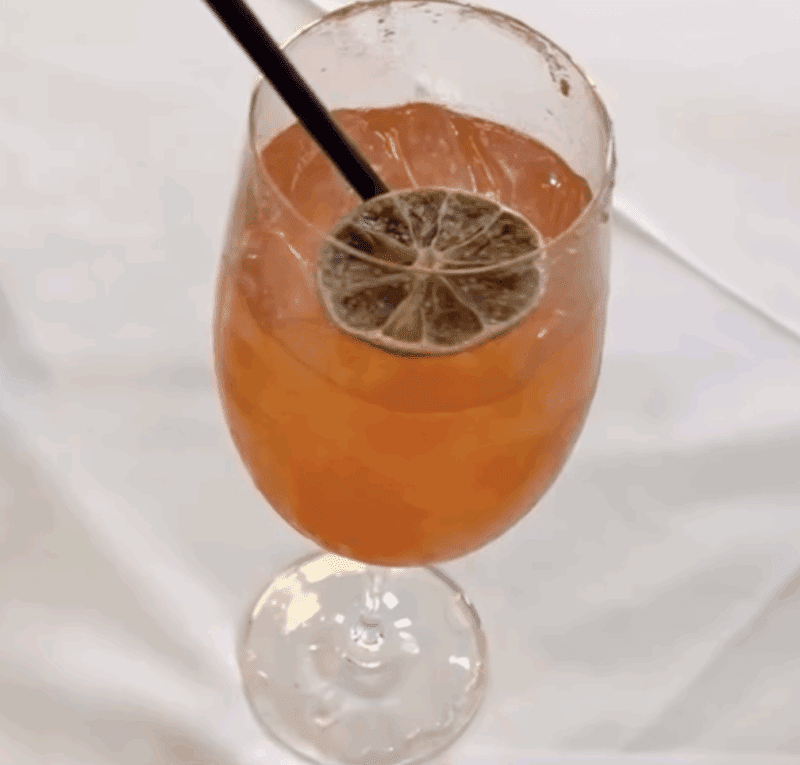 The Jack O’ Lantern fall cocktail features brown butter Benchmark Bourbon, grapefruit juice, spiced honey syrup, lemon juice, Angostura bitters, and botanical foamer, creating a perfectly balanced drink best enjoyed on crisp evenings at their rooftop patio. It’s an fun take on a fall bourbon cocktail that captures the cozy, playful spirit of the season.