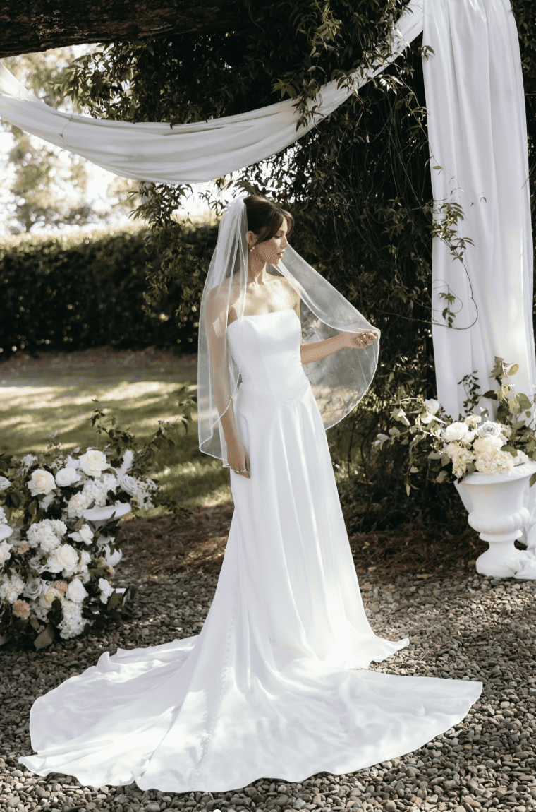 Keep in mind: Most gowns take 4–6 months to arrive, plus another 8-12 weeks for alterations, so booking 7–8 months before your wedding is ideal. If your date is sooner, there are quick-ship and ready-to-wear options available.