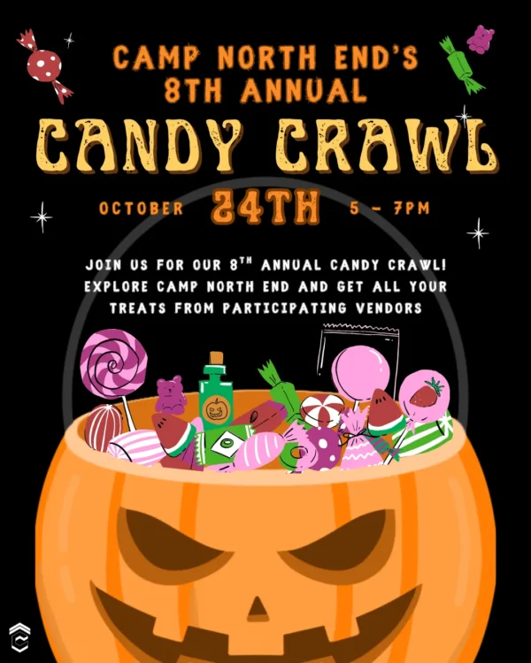 Get your costumes ready, Camp North End’s 8th Annual Candy Crawl is back! On Friday, October 24th from 5–7 PM, families can trick-or-treat through 30+ Camp businesses for a night of sweet fun (while supplies last). It’s free, family-friendly, and full of treats.