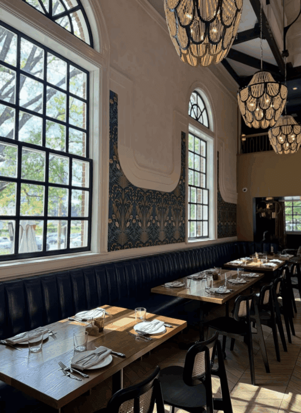 Rosemont offers a warm and inviting setting for holiday parties, with flexible spaces that suit both intimate dinners and lively cocktail gatherings. For outdoor events, the semi-private patio accommodates up to 30 guests seated or 60 guests standing. The patio features umbrellas, fire pits, and mushroom heaters so the space is suitable even in cooler weather. For indoor celebrations, Rosemont can host up to 62 guests seated or 75 standing. The interior is elegant and festive, with gold accents, marble tables, and a carefully curated wine selection that creates a beautiful backdrop for any holiday event. Find more information on the restaurant’s website or contact becca@1957hospitality.com.