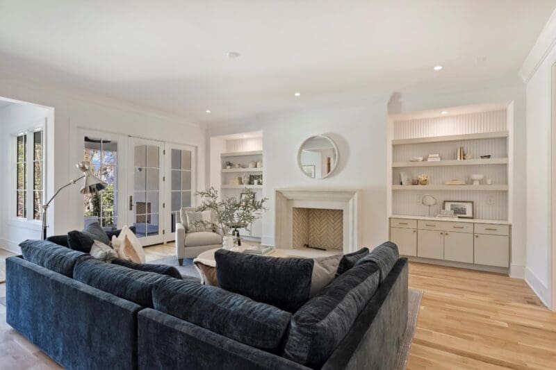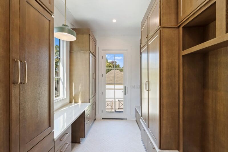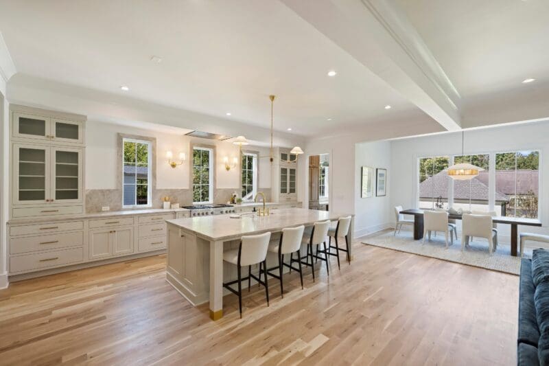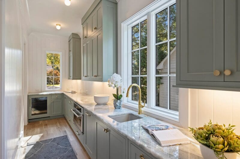 A hidden scullery connects to the dining room through a concealed panel door, pairing functionality with elegant design.