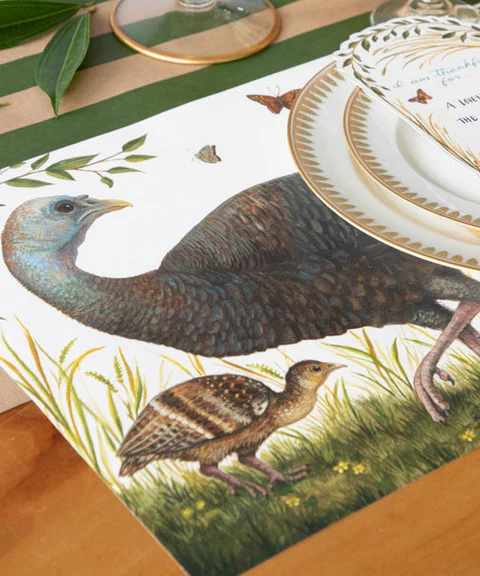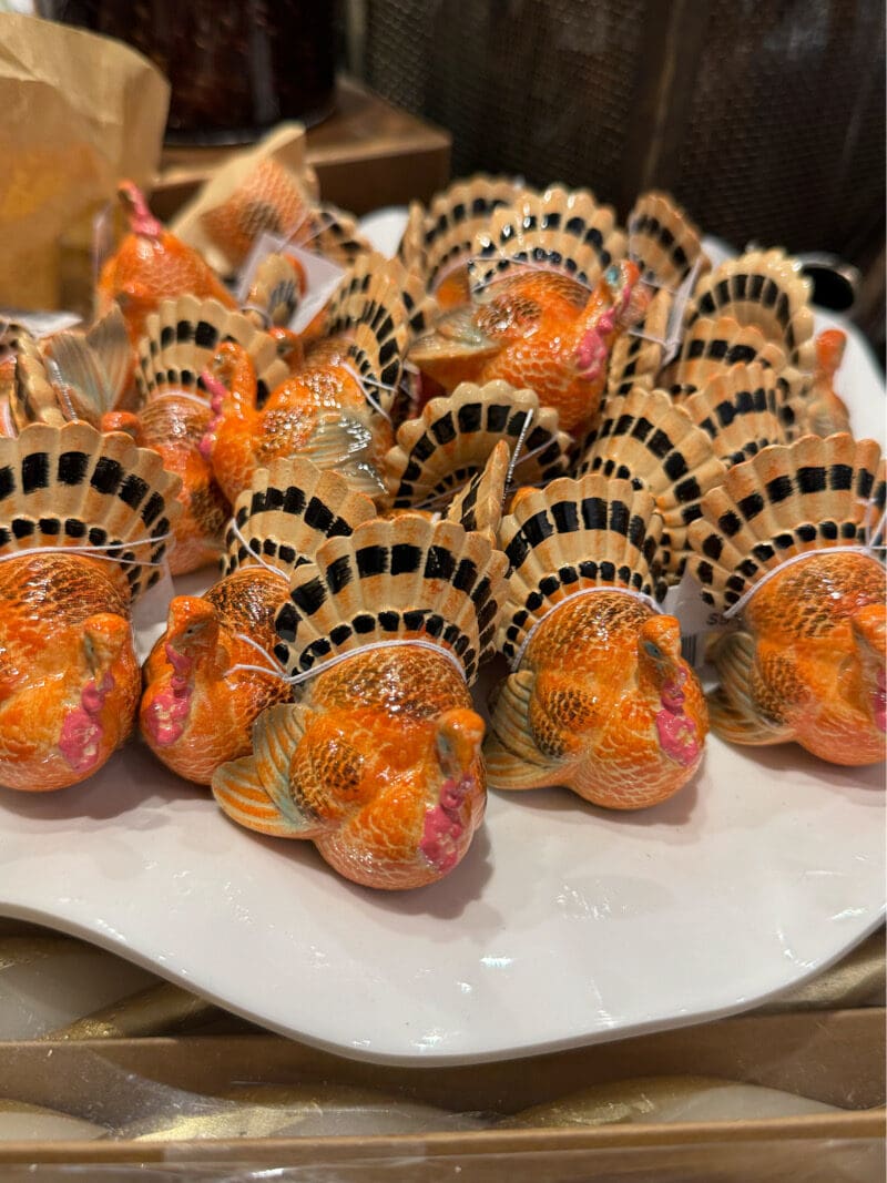 These paper placemats featuring a Hen mama and her three adorable chicks are putting on a Thanksgiving parade of their own. A Pad of 24 sheets , 18.5″ x 12.5″, is $32 at THE MINT MUSEUM STORES, BUY HERE.