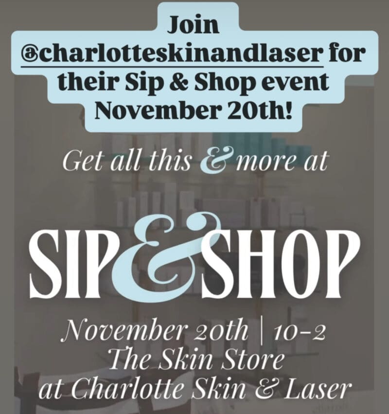 Join the CS&L aesthetic team for an in-store Sip & Shop experience where you’ll receive personalized skincare guidance, curated product recommendations, and enjoy first access to exclusive seasonal savings. Enjoy light refreshments while getting help to build a simple, effective routine, and choose treatments that support your holiday glow. To reserve your complimentary skincare consultation* (a $75 value), call or text 704.333.9113.