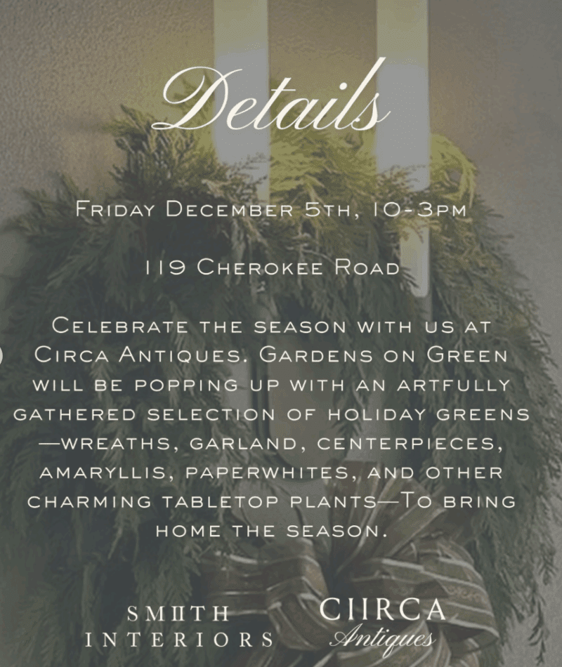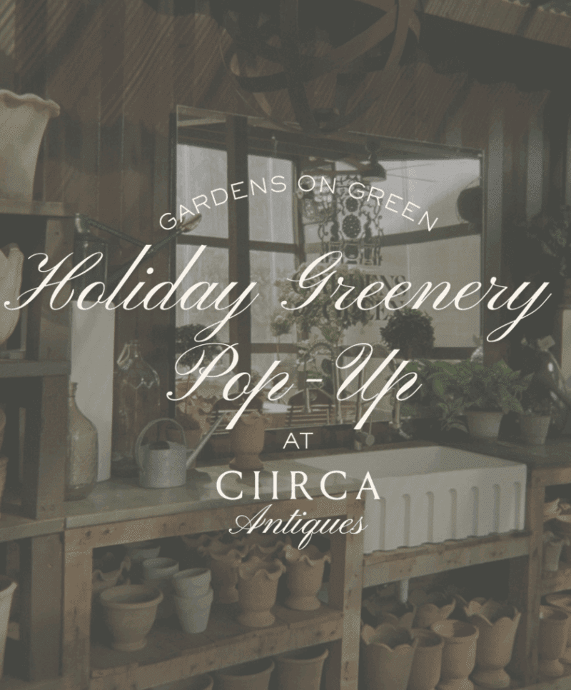 Gardens on Green is popping up at CIRCA2 for a holiday greenery pop-up filled with fresh wreaths, garland, centerpieces, amaryllis, paperwhites, and more.