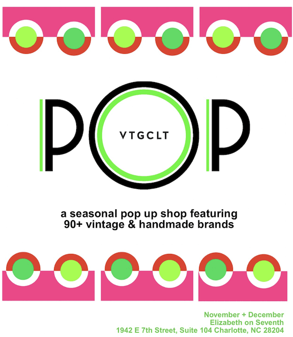 The VTGCLT has a store pop up in Elizabeth with over 90 of local and regional vintage and handmade brands from Dec 6-Dec 23, open daily 10-7 at 1942 East 7th Street, 104, in the Elizabeth on Seventh complex (right next to @barre3charlotte and around the corner from @rosemont.clt) Parking is available in the parking structure and 1 hour validation is available with any purchase.