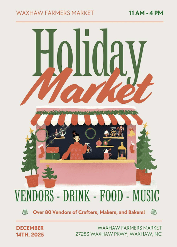 The Waxhaw Farmers Market Winter Holiday Market is Sunday, December 14 | 11 AM – 4 PM