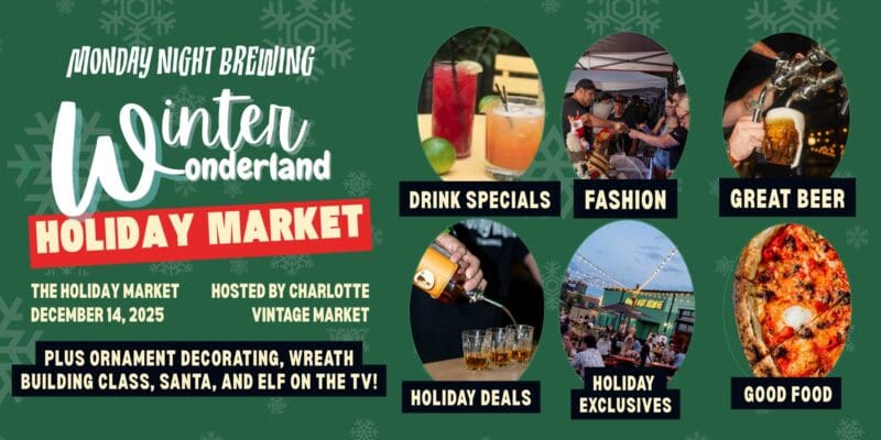 Swing by NoDa Brewing Co. from December 13–14 for two days of festive fun, local shopping, and all the holiday vibes. Expect cozy crafts, awesome Charlotte vendors, unique gifts, and your favorite NoDa brews. Bring your friends, grab a beer, and knock out your holiday shopping while supporting local.