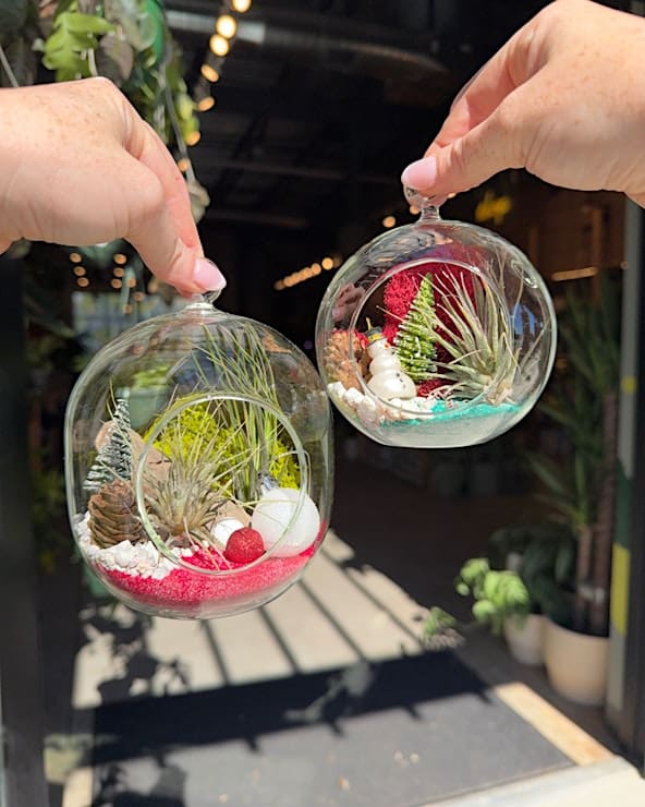 Create two festive air plant ornaments at PlantHouse’s Holiday Ornament Set Workshop. You’ll have the chance to ceate unique terrarium-style pieces using air plants, seasonal sand, stones, preserved moss, and a wide selection of holiday décor like mini snowmen, pinecones, and bottle-brush trees. This workshop covers basic air plant care and provides all materials, making it a fun, hands-on way to craft an one-of-a-kind ornaments for gifting or keeping.