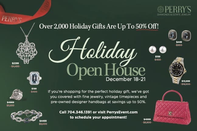 Join PERRY’S for their Holiday Open House from Thursday, December 18 through Sunday, December 21 and shop over 2,000 pieces of jewelry on sale just for holiday gifting.