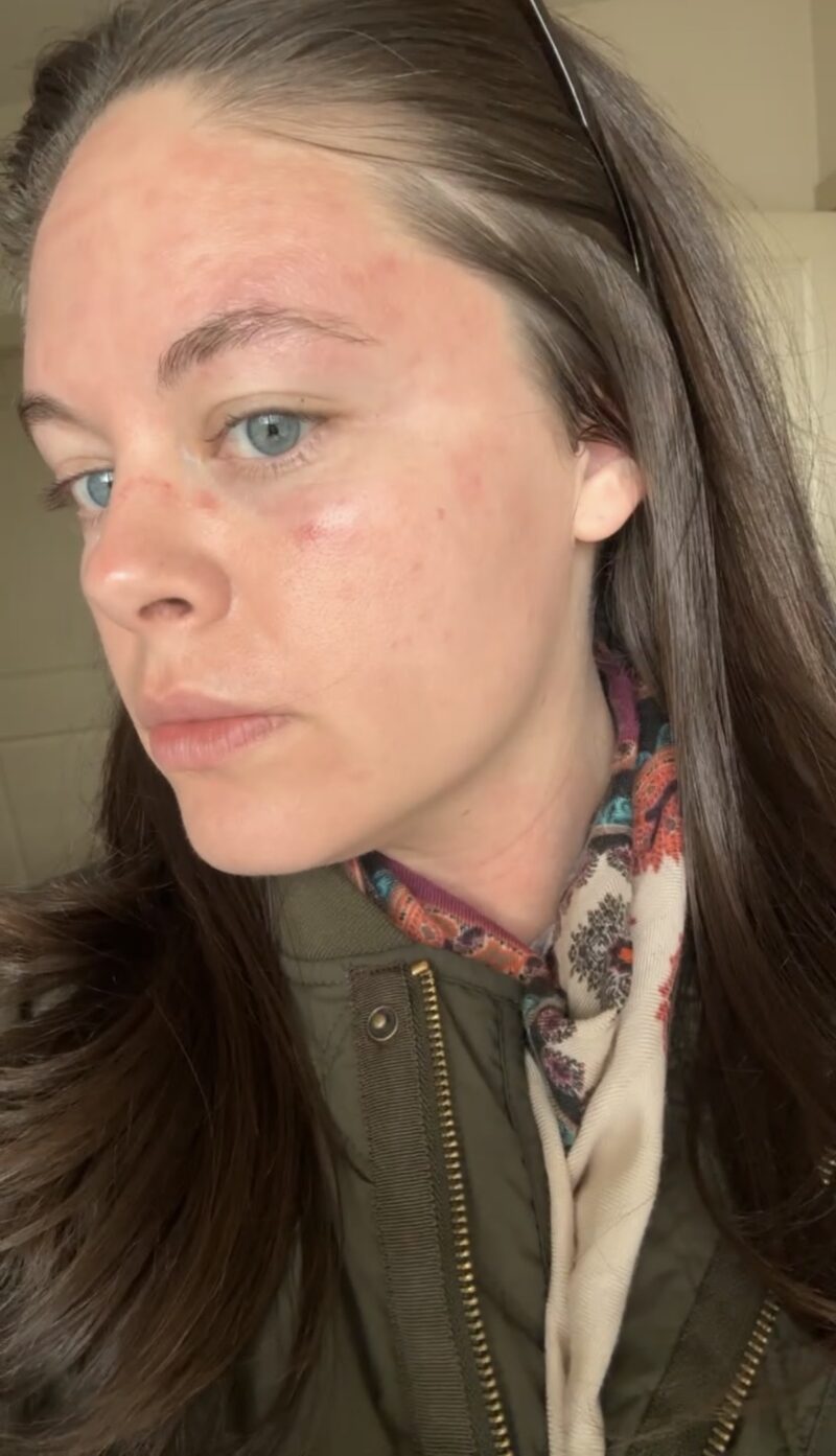 This is the next morning, after using the three-step Epicutus routine they sent me home with. I went out in public like this! The redness basically disappeared by the end of the day, leaving a little bit of texture and dryness. I was shocked given how slow-healing and red my skin can be.