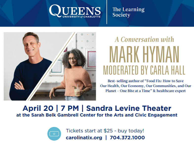 Food Fix: How To Save Our Health, Our Economy, Our Communities, and Our Planet ~ One Bite at a Time. A Conversation with Mark Hyman Moderated by Carla Hall